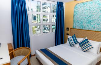 Welcome to Umet Seaview. Rise with the sun and breathe in the sea from the comfort of your room. Located a minute’s walk away from the premier surf spot in Male’ and opposite Lonuziyaaraiy Park, Umet Seaview is enclosed in lush greenery and the salt of the sea. The sense of sanctuary is fulfilled by the spacious rooms with comfortable yet elegant interiors. Umet Seaview is a five-minute drive from the Velana International Airport and within walking distance from a hospital, countless cafes and restaurants, and an assortment of shops. Choose your preferred room for your ideal escape from the four categories of rooms we have.